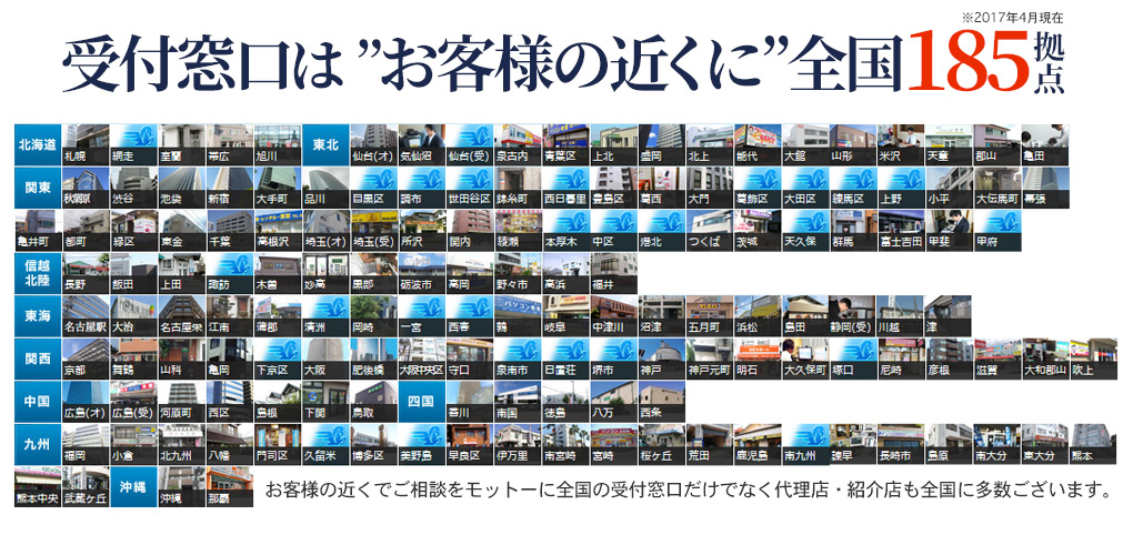 店舗への来店が難しい地域の方々には、上記店舗へ機器を郵送していただく【郵送受付】も行っております。なるべくお客様の近くで対応できるよう、各店舗を設けております。