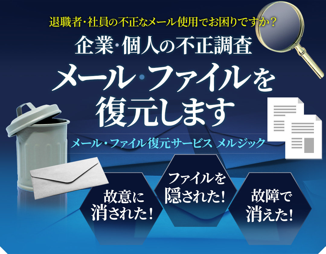 フリーソフトでは難しい完全消去のメール復元・証拠追跡可能です