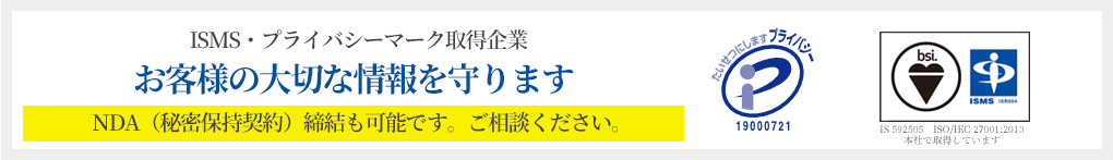 ※秘密保持契約(NDA)は作業前に締結可能です。お問い合わせ時もしくは出張/来店/郵送時にスタッフへお申し付けください。